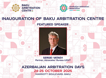 Рады вам сообщить, что партнер Адвокатской конторы "Legit" Сергей Ватаев, примет участие в мероприятии Azerbaijan Arbitration Days 2025, организованным Baku Arbitration Centre и Azerbaijan Arbitration Association, которое пройдет 24–25 октября 2025 года.